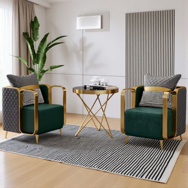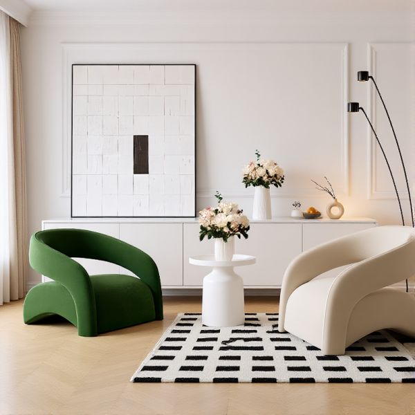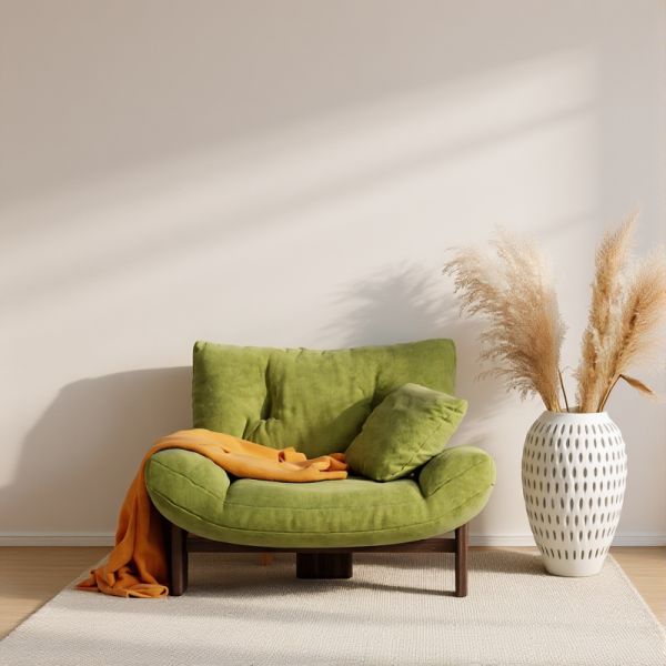 Modern Green Upholstered Lounge Chair with Pillow, Wide Seat, Solid Wood Legs for Living Room