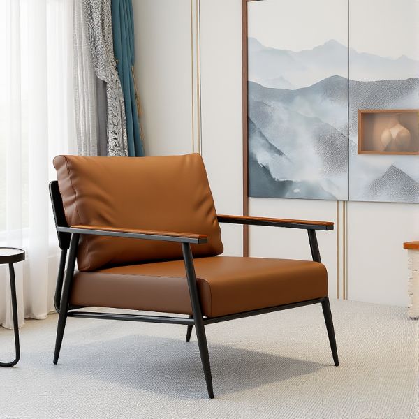 Mid-Century Modern Faux Leather Accent Chair, Brown Lounge Armchair with Metal Frame & Wood