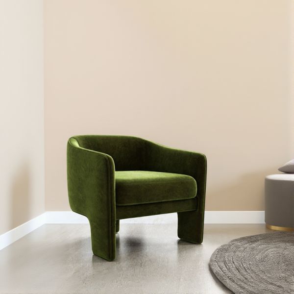 Modern Velvet Accent Chair in Olive Green, Cozy Lounge Armchair for Living Room or Reading Nook