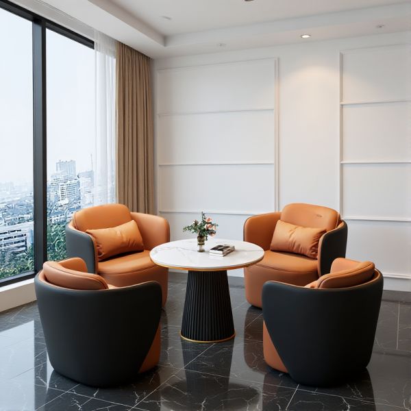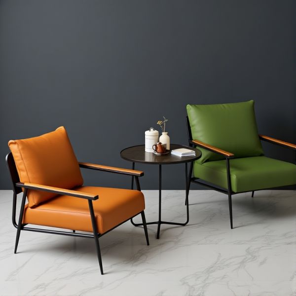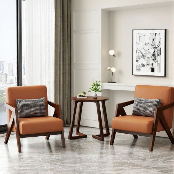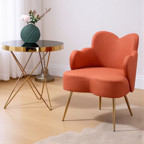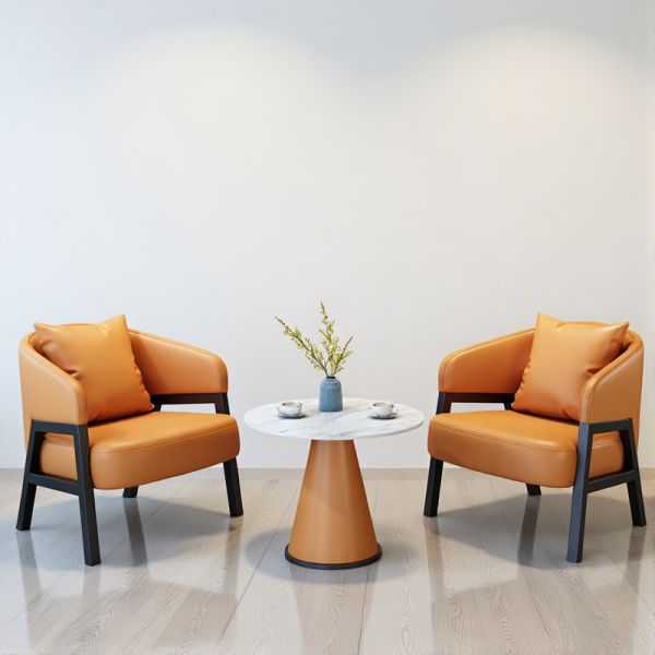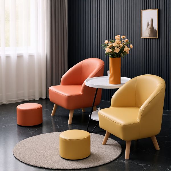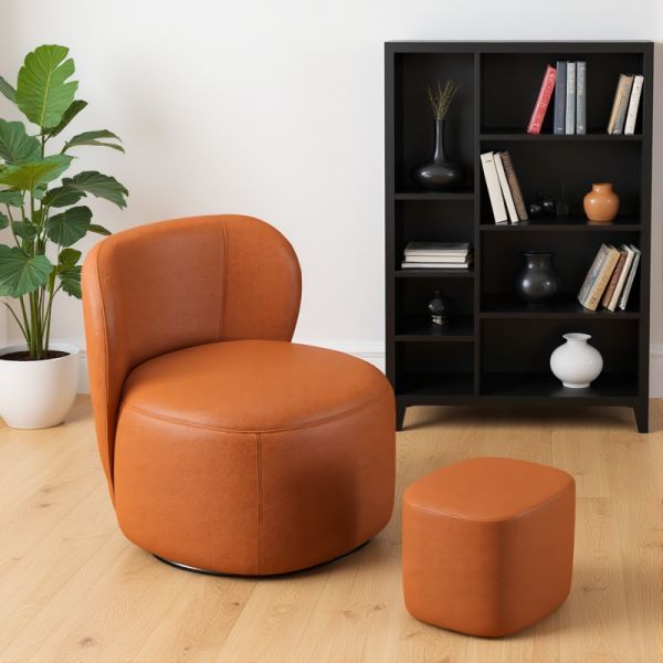 Modern Faux Leather Accent Chair with Ottoman, Orange Armless Lounge Seat Set for Living Room