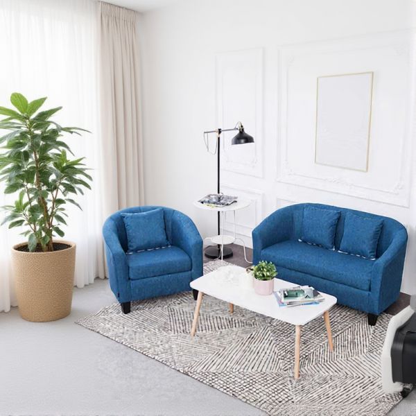 Navy Blue Barrel Club Chair, Upholstered Armchair with Pillow, Single Sofa for Living Room