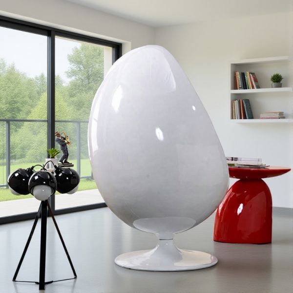 Modern Egg Pod Swivel Accent Chair, Glossy White Fiberglass Lounge Seat for Living Room