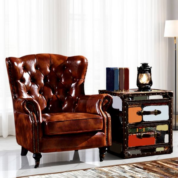 Vintage Industrial Rectangular Storage End Table with Drawers, Trunk-Style Side Table for Living