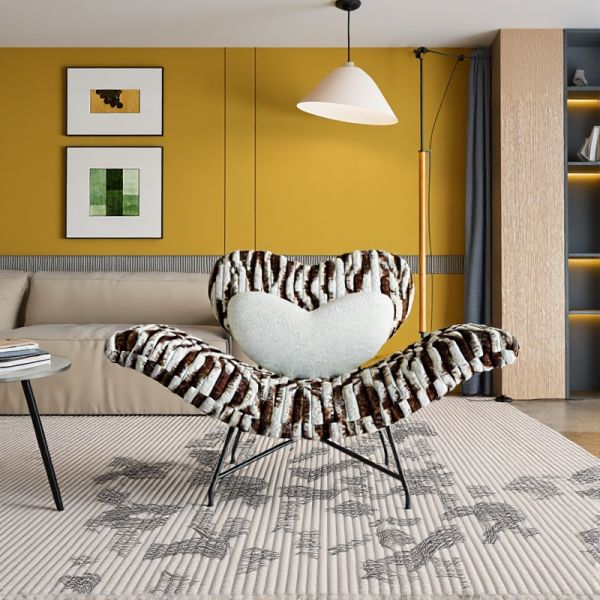 Contemporary Lounge Accent Chair with Heart Pillow, Plush Striped Upholstery, Metal Legs for Living