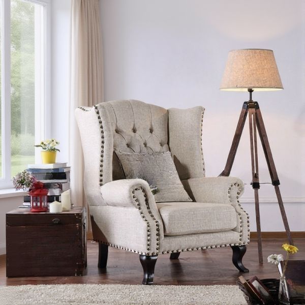 Classic Linen Wingback Accent Chair with Button Tufting, Nailhead Trim & Solid Wood Legs for Living