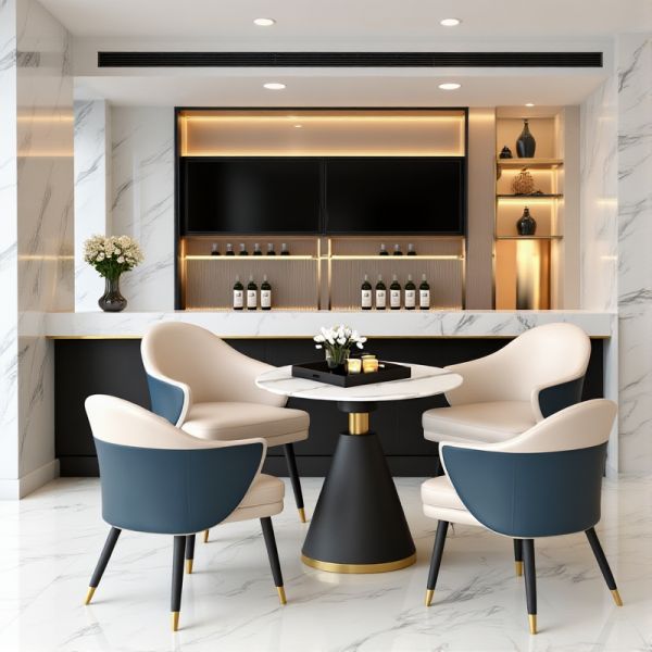 Modern Round Marble-Look Pedestal Bistro Table, Metal Base Small Cafe/Coffee Dining Table for Bar