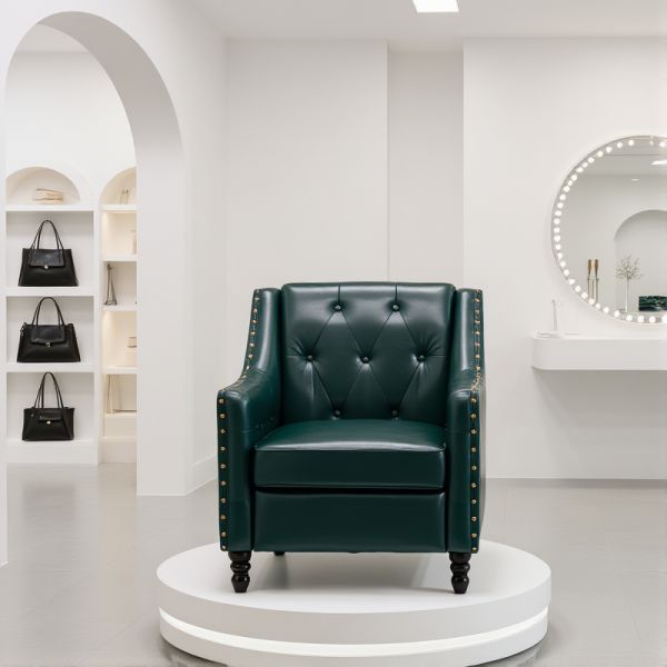 Deep Green Tufted PU Leather Accent Chair with Nailhead Trim, Club Armchair with Turned Wood Legs