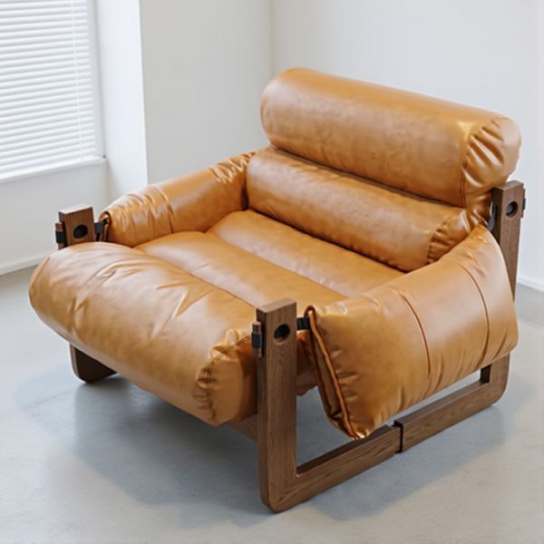 Oversized Camel Faux Leather Lounge Armchair with Solid Wood Frame, Deep Seat Accent Chair
