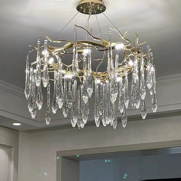 Chandelier Light with Transparent Glass Shade, Translucent Shade, Chain Mounting, Transparent Crystal, and Adjustable Chain