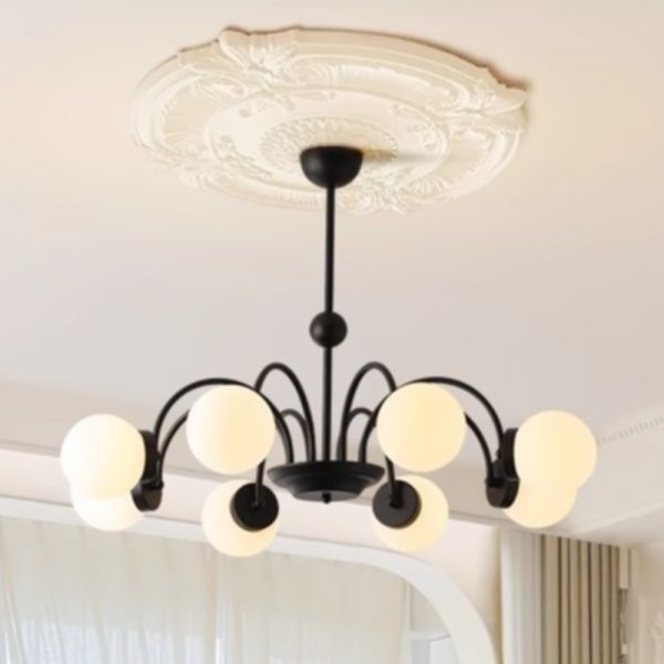 Dome Light Chandelier with White Glass Shade, White Color, Pendant Rod Mounting, Direct Wired Electric, Vitreous Material