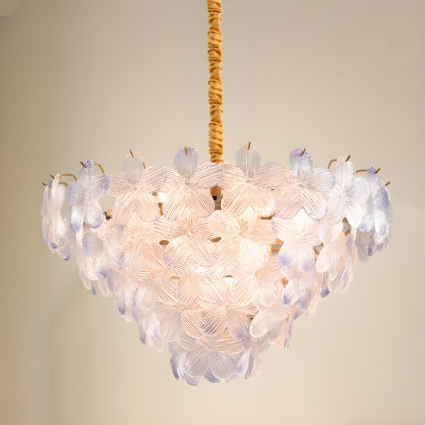 14 Lights/9 Lights/6 Lights Adjustable Height Pendant Light with Glass Clear Petal Shape Cover