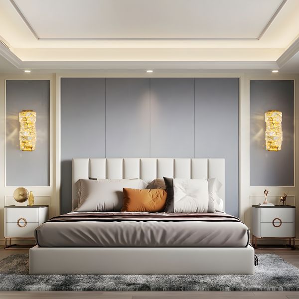 Contemporary Glam Crystal Wall Sconce, Gold Finished Vanity Light with Faceted Prisms for Bedroom Hallway - 110V-120V 10.5"