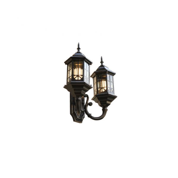 Classic Victorian Double Outdoor Wall Sconce, Cast Aluminum 2-Light Porch Lantern with Glass Shades - Black 110V-120V 16.5"