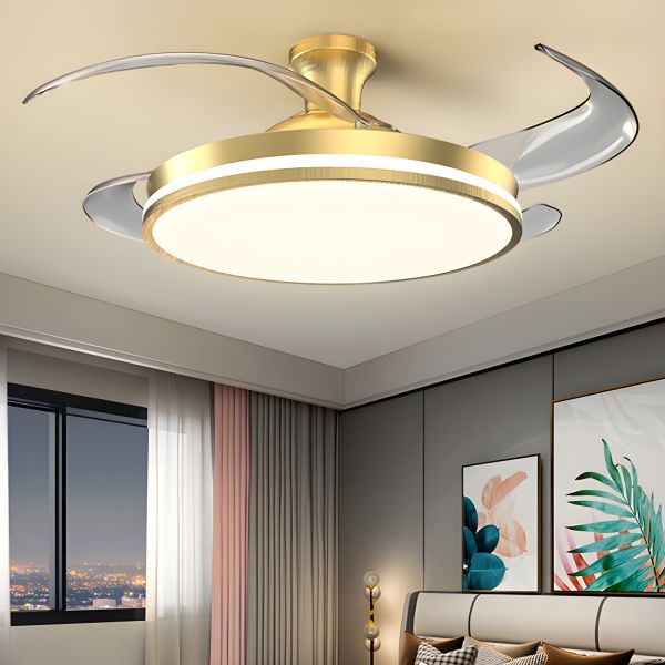 Contemporary Retractable Ceiling Fan with LED Firefly Branch Lighting and Invisible Blades - Gold 110V-120V