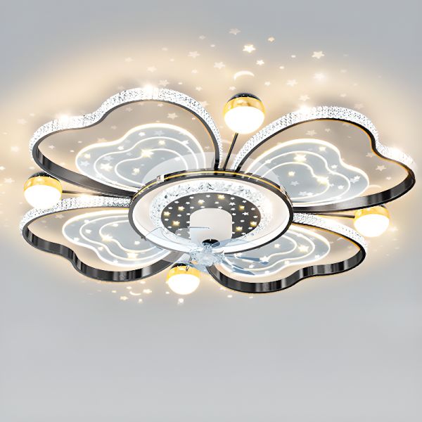 Contemporary Sputnik Ceiling Fan with Light, Semi-Flush Mount LED Fandelier with Starry Sky Projection - Black 110V-120V 8