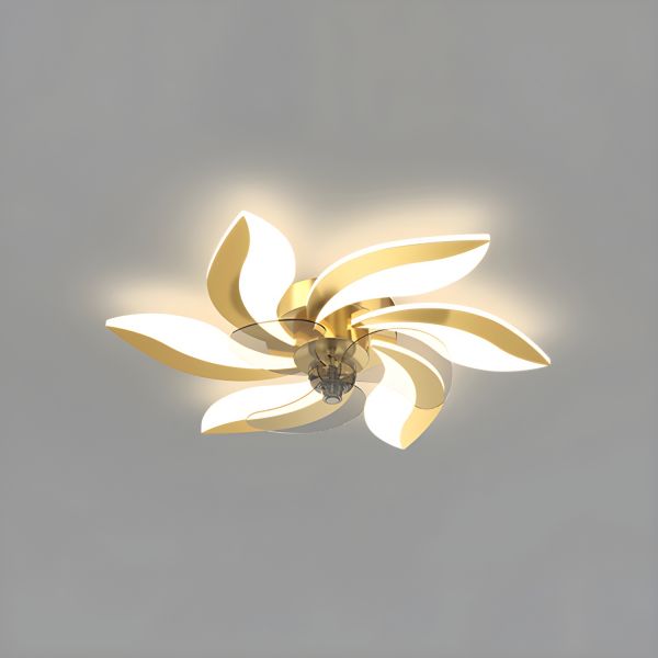 Contemporary Flower Ceiling Fan with Dimmable LED Light, Low Profile Flush Mount Fixture with Remote - 110V-120V Gold Remote Control Stepless Dimming 27"