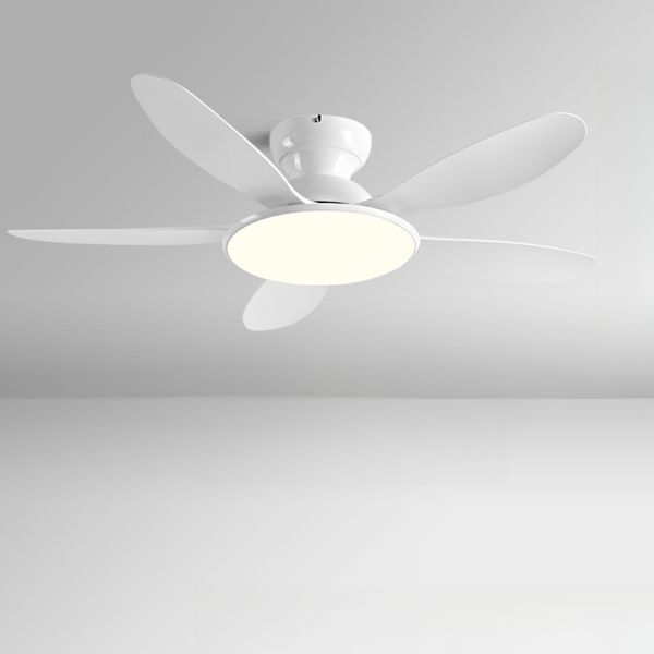 Scandinavian Low Profile Ceiling Fan with LED Light & Quiet Airflow - White 110V-120V 48"