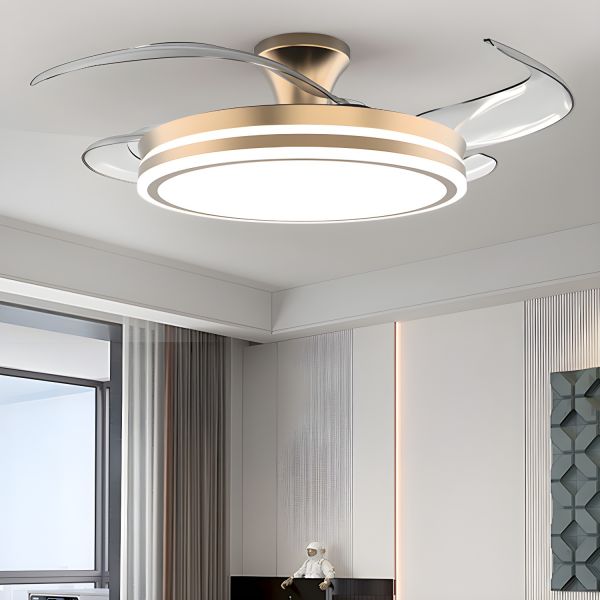 Contemporary Retractable Ceiling Fan with Dimmable LED Light and Invisible Blades - 110V-120V Gold Third Gear (Warm/White/Neutral Light of Dimming) 93 cm