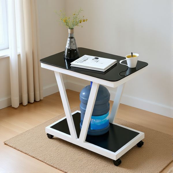 2-Tier Black Tempered Glass Sofa Side Table, Rectangular End Table with V-Shaped Base and Storage - 24"L x 15"W x 24"H White Black
