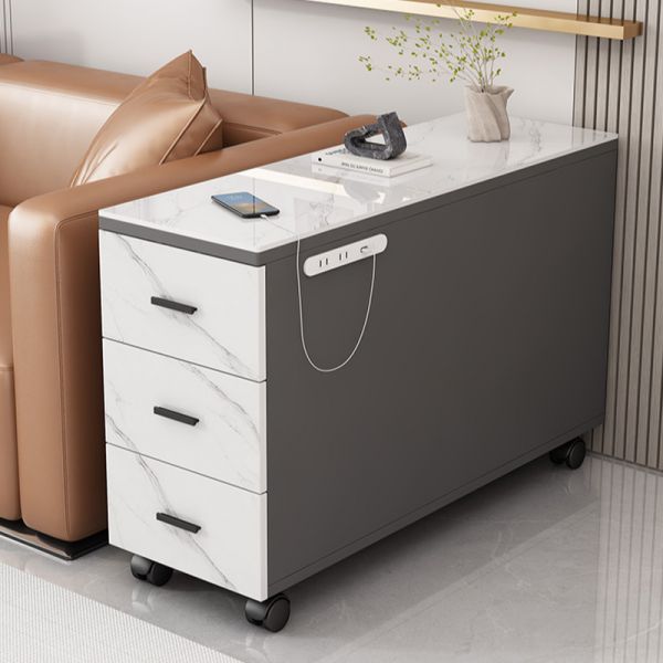 Mobile End Table Coffee Station Cabinet with Drawers & Door, Faux Marble Top, Rectangular Storage - Dark Gray 24.4"L x 15.7"W x 31.5"H
