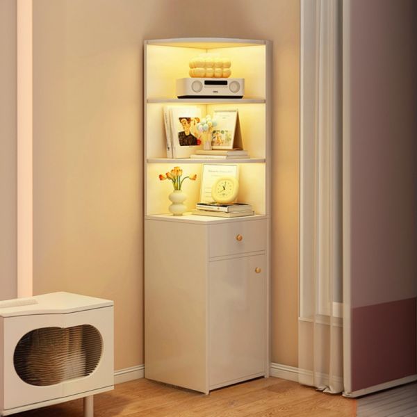 Nordic Corner Bookshelf with Lighting, Wooden Storage Cabinet with Shelves and Drawer for Living - White 1 11.8"L x 11.8"W x 59.1"H