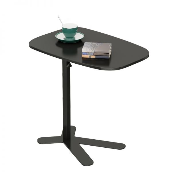Modern Walnut Wood Sofa Side Table, Small Snack/End Table with Metal Base, Rounded Rectangle Top - Black