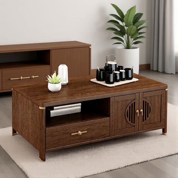 Rectangular Wooden Coffee Table with Drawers & Cabinets, Living Room Storage Center Table, Walnut - 47"L x 24"W x 18"H