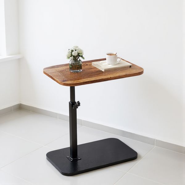 Casual Adjustable Height Turned Chairside Table in Light Wood with a Tabletop in Engineered Wood, Walnut, 16"L x 12"W x 31"H, Lift
