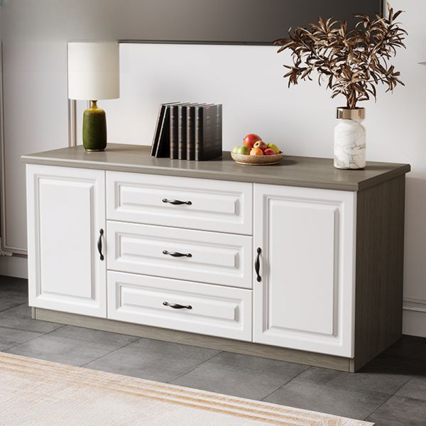 Low-profile TV Console with 3 Drawers & Side Cabinets, Rectangular Wood Media Stand Storage Unit - White/Gray Oak 39"L x 16"W x 28"H