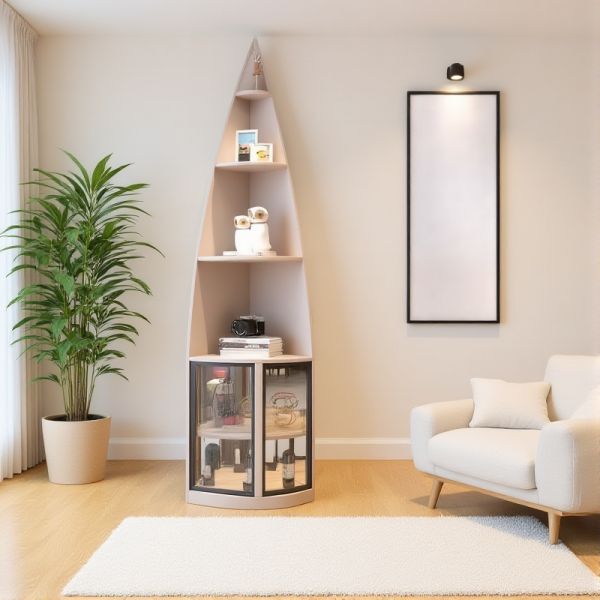 Modern Corner Display Cabinet, 5-Tier Wood Shelf with Glass-Door Storage for Living Room/Bar - Khaki 12"L x 12"W x 87"H