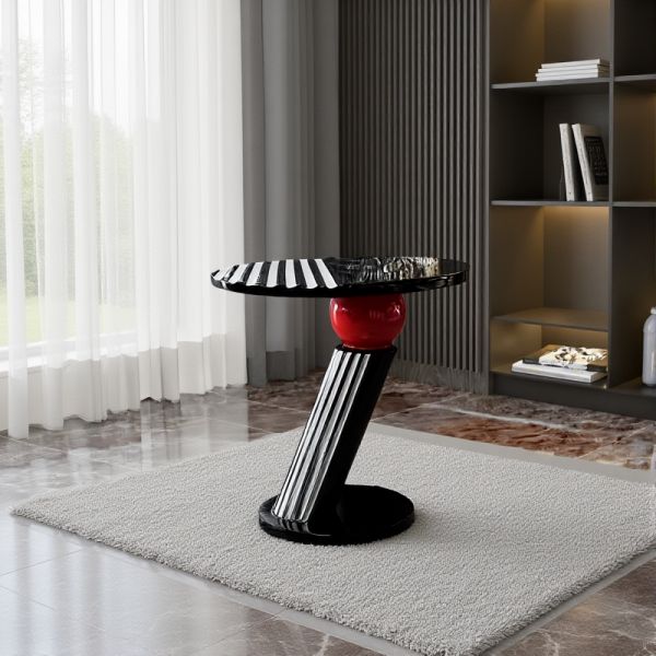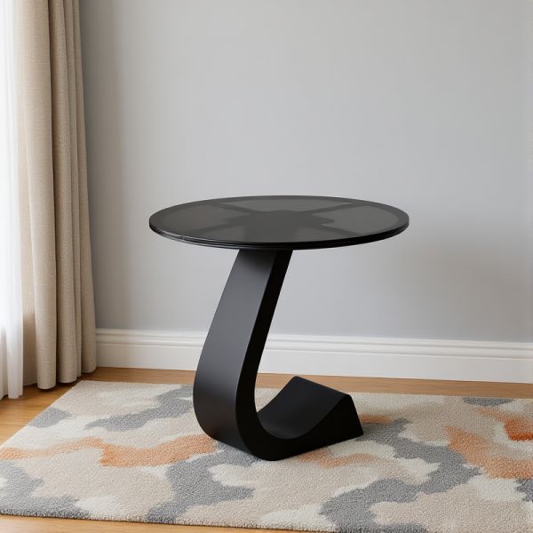 Round Tempered Glass Top Coffee/Side Table, Modern Black Sculptural Base Accent Table for Living - Matte Black 16"L x 16"W x 20.5"H