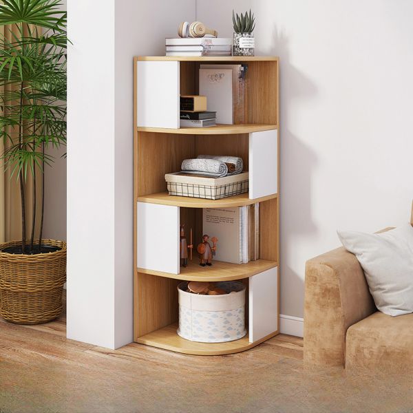 5-Tier Corner Bookcase Wood Storage Shelf with White Doors, Space-Saving Display Organizer - 16"L x 16"W x 46"H Natural/White