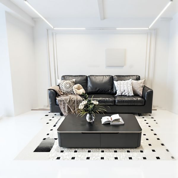 Sleek Rectangular Coffee Table, Matte Black with Rounded Corners, Hidden Drawer Storage for Living - Black 39"L x 20"W x 15"H