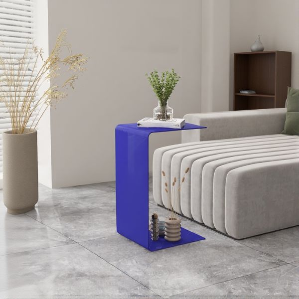 Modern C-Shaped Metal End Table, Sofa Side Table with Lower Shelf, Slim Accent Table for Living - Blue