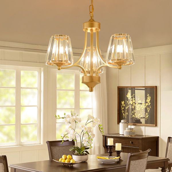 Modern Gold Crystal Chandelier, Brass Pendant Light with Faceted Shades for Dining & Living Room - 3 110V-120V
