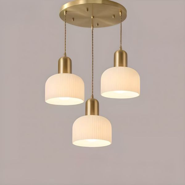 Industrielle Luxus Zylinder Pendelleuchte, geriffelte Glas-Hängelampe für Esszimmer - 3 Golden 110V-120V