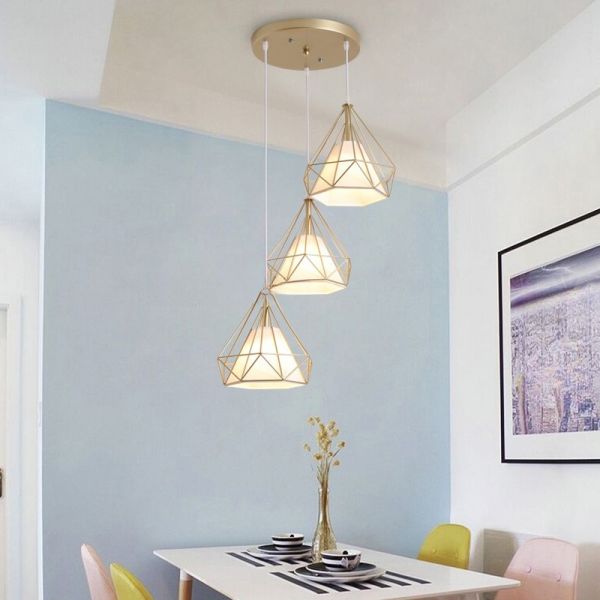 Industrielle geometrische Drahtkäfig-Pendelleuchte mit innerem Stoffschirm - 3 110V-120V Rund Gold-Weiß