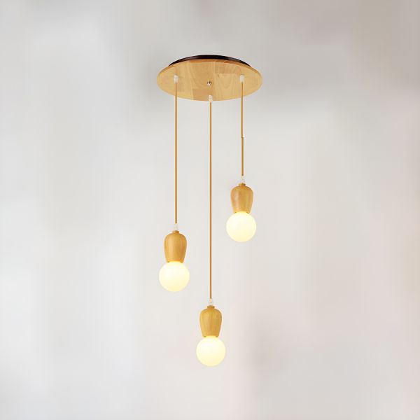 Hängelampe aus Holz mit mehreren Lichtern im modernen Stil für Schlafzimmer - 110V-120V 3 Rund