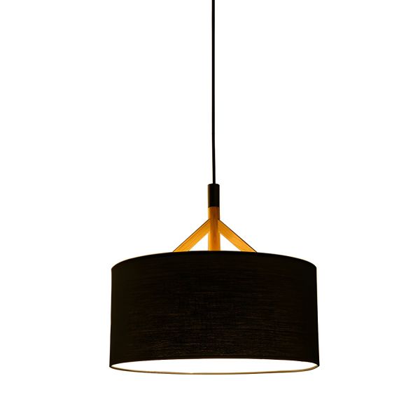 Scandinavian Fabric Pendant Light with Natural Wood Accents and Drum Shade - Black 110V-120V