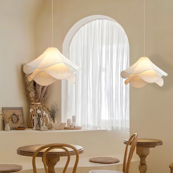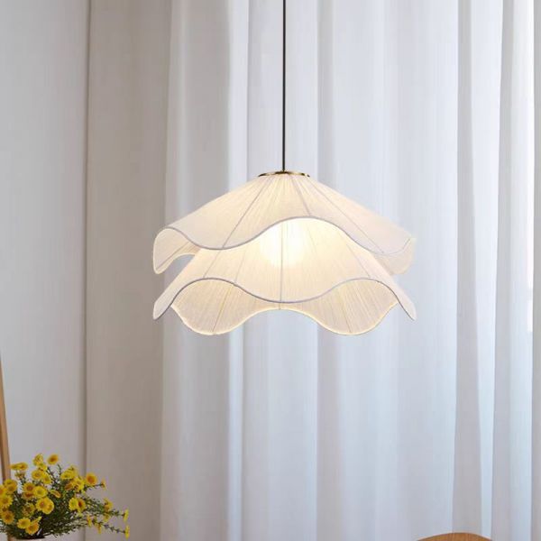 Japandi Fabric Petal Pendant Light, Wabi-Sabi Scalloped Hanging Lamp with Soft Diffusion - 110V-120V 20"
