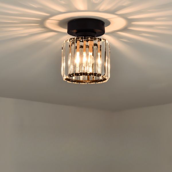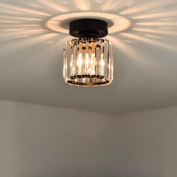 Crystal Shade Semi Flush Fixture Flush Mount Light, Clear Crystal, LED/Incandescent/Fluorescent, Ink, 1 Light in Modish Style, 110V-120V, Round