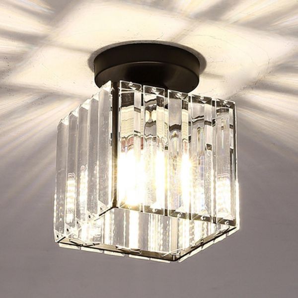 1 Light Semi Flush Ceiling Fixture Light with Transparent Crystal Shade for Home - 110V-120V Black Square
