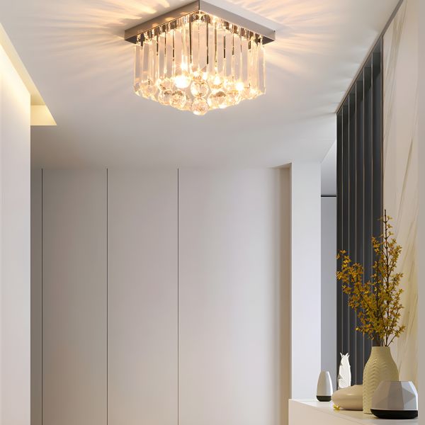 Modern K9 Crystal Ceiling Light, Square LED Hallway Fixture with Chrome Base for Entryway Foyer
