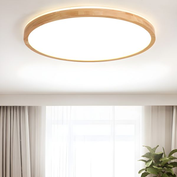 Scandinavian Solid Wood Flush Mount Ceiling Light, Ultra-Slim Low Profile LED Fixture for Bedroom