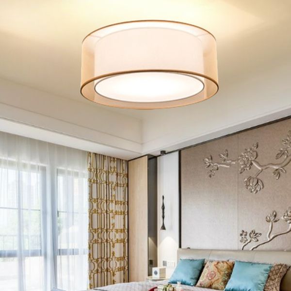 8 Long Fabric Shade Flush Mount Chinese Style Flush Mount Lighting Fixtures for Living Room