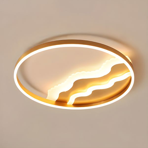Contemporary Gold Flush Mount Ceiling Light, Round LED Fixture with Artistic Wavy Design