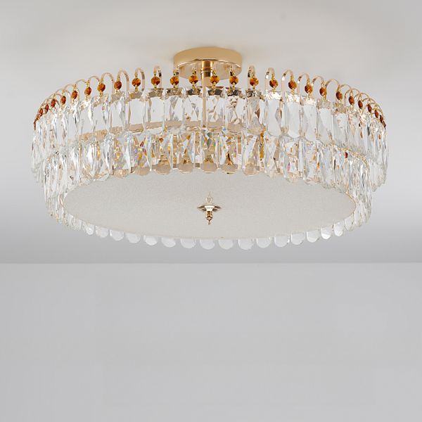 Luxe Gold Crystal Flush Mount Ceiling Light, Round K9 Prism Chandelier Fixture for Bedroom Entryway