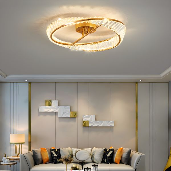 Geometry Shape Modern Simple Style Iron 2 Lights Crystal LED Ceiling Lamp for Bedroom