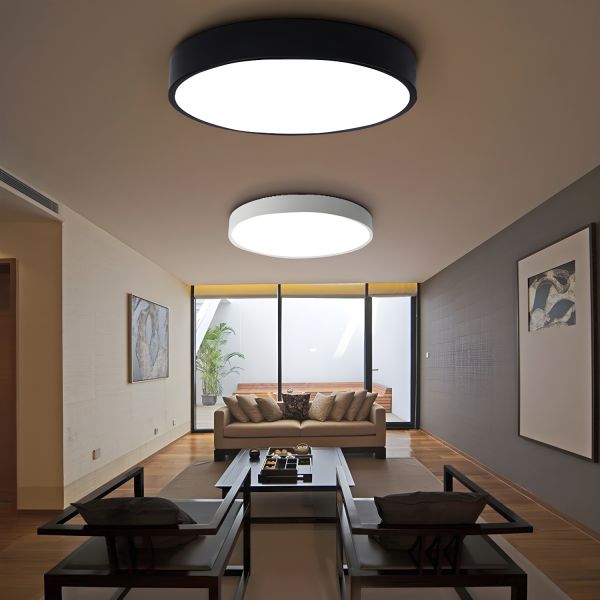 Scandinavian Minimalist Flush Mount Ceiling Light, Round Metal LED Fixture with Acrylic Shade