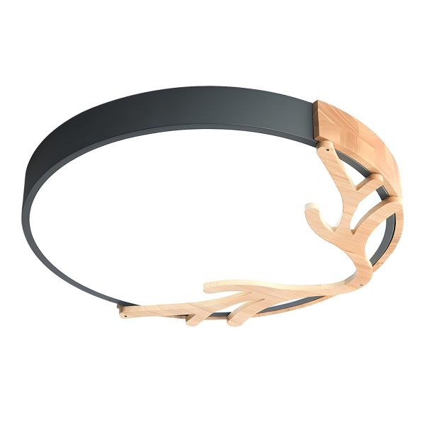 Scandinavian LED Flush Mount Ceiling Light with Wood Antler Accent for Nursery or Bedroom